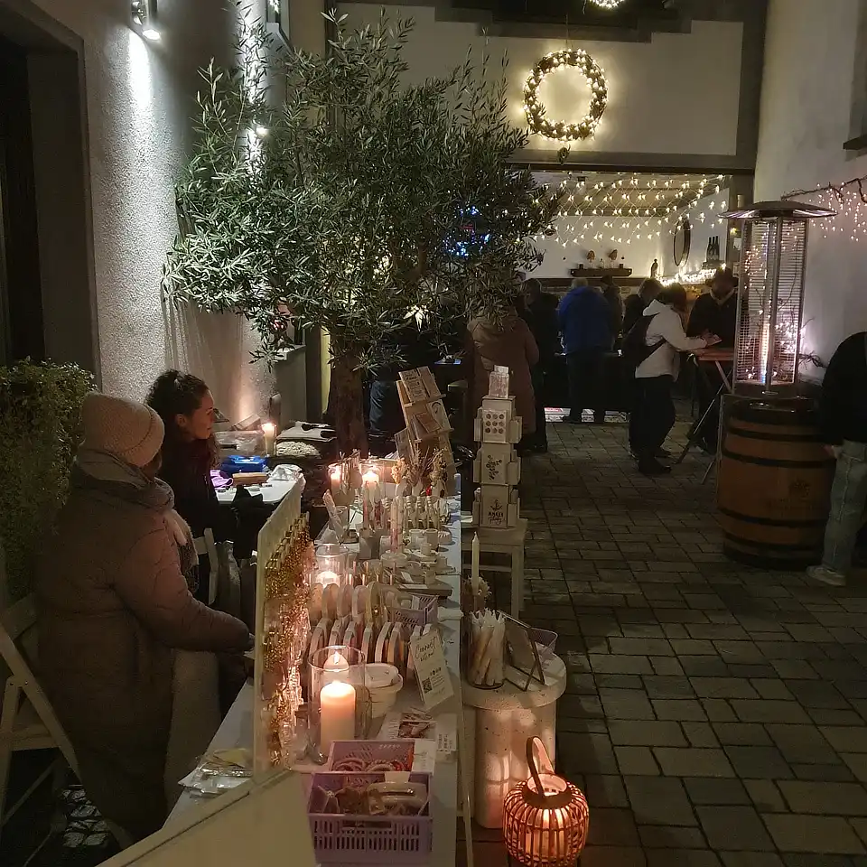 An unserem Stand bieten wir hausgemachten Glühwein an, den wir aus eigenem Wein und sorgfältig ausgewählten Gewürzen zubereiten. Zusätzlich gibt es bei uns auch aromatischen Punsch.